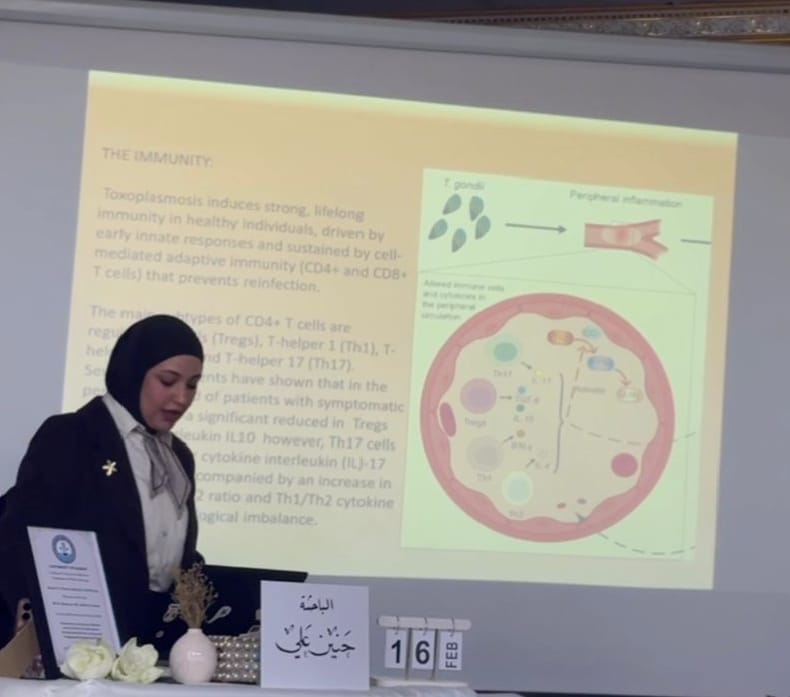 The study, conducted by graduate student Hanin Ali, was titled “Immunological and Molecular Prevalence of Toxoplasma gondii in Cats and Their Human Owners.” It aimed to determine the rate of asymptomatic infections and to investigate the immunological and genetic factors that enable the parasite to persist in a latent state without causing apparent tissue damage.